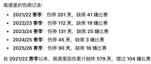 佩德里伤退,或缺阵4-5周